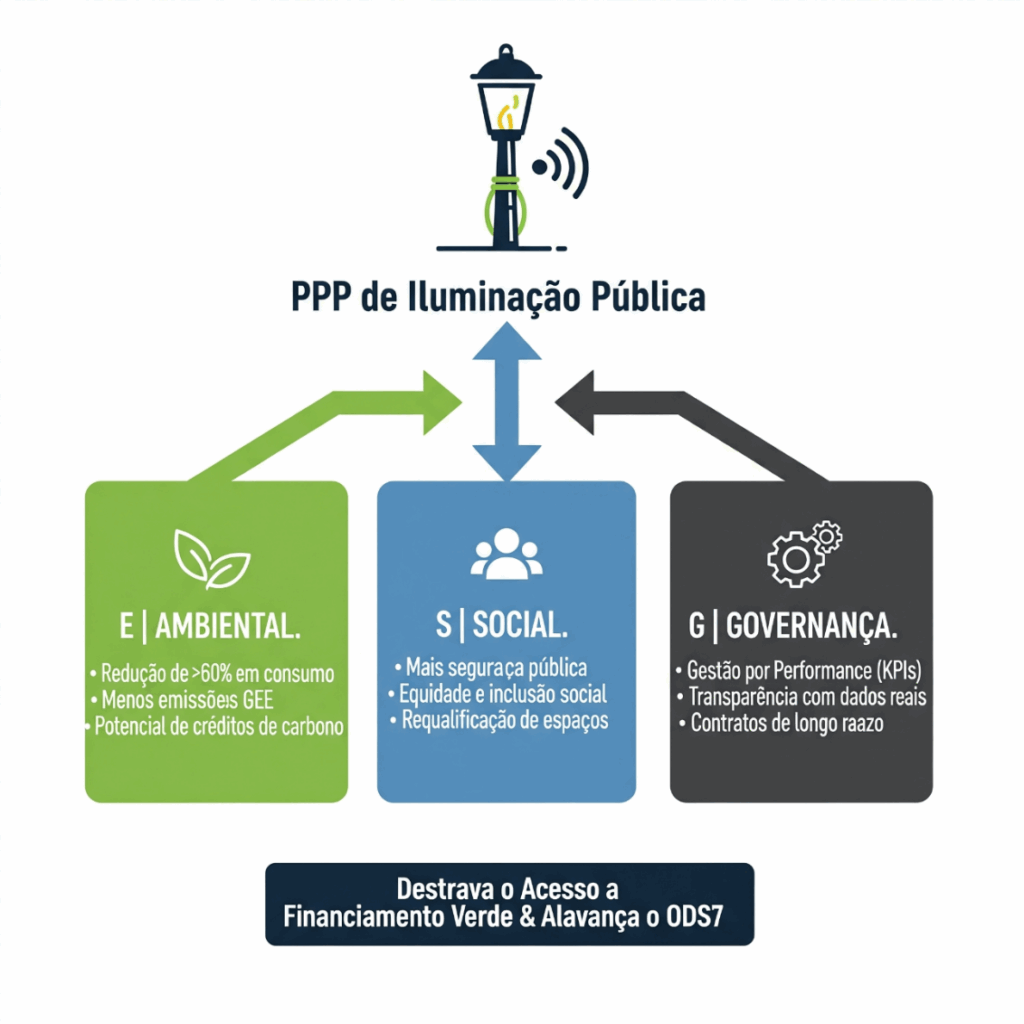 A percepção sobre a iluminação pública no Brasil mudou. O que antes era visto como um centro de custo operacional, hoje se consolida como um ativo estratégico para o desenvolvimento de cidades inteligentes e sustentáveis. A onda de modernização via Parcerias Público-Privadas (PPPs) vai muito além da simples troca de lâmpadas: ela representa uma plataforma robusta para municípios fortalecerem seu desempenho ESG (Ambiental, Social e de Governança), destravarem o acesso a financiamentos verdes e darem um salto no cumprimento de metas globais, como o Objetivo de Desenvolvimento Sustentável 7 (ODS7). O ponto que gestores e investidores não podem ignorar é que o sucesso não está mais em questionar a viabilidade, mas em saber como estruturar esses projetos para extrair seu máximo valor estratégico.
